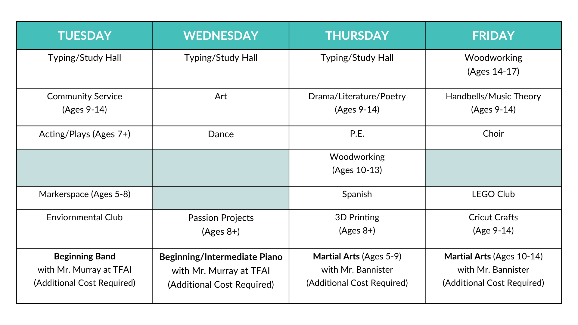 4th Grade - 8th Grade - TUESDAY & THURSDAY, ½ Day, 12:00 pm-3:00 pm